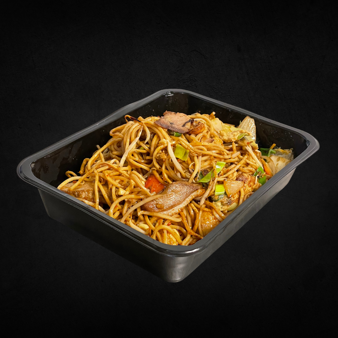 Gebratene Nudeln mit Gemüse und Entenfleisch