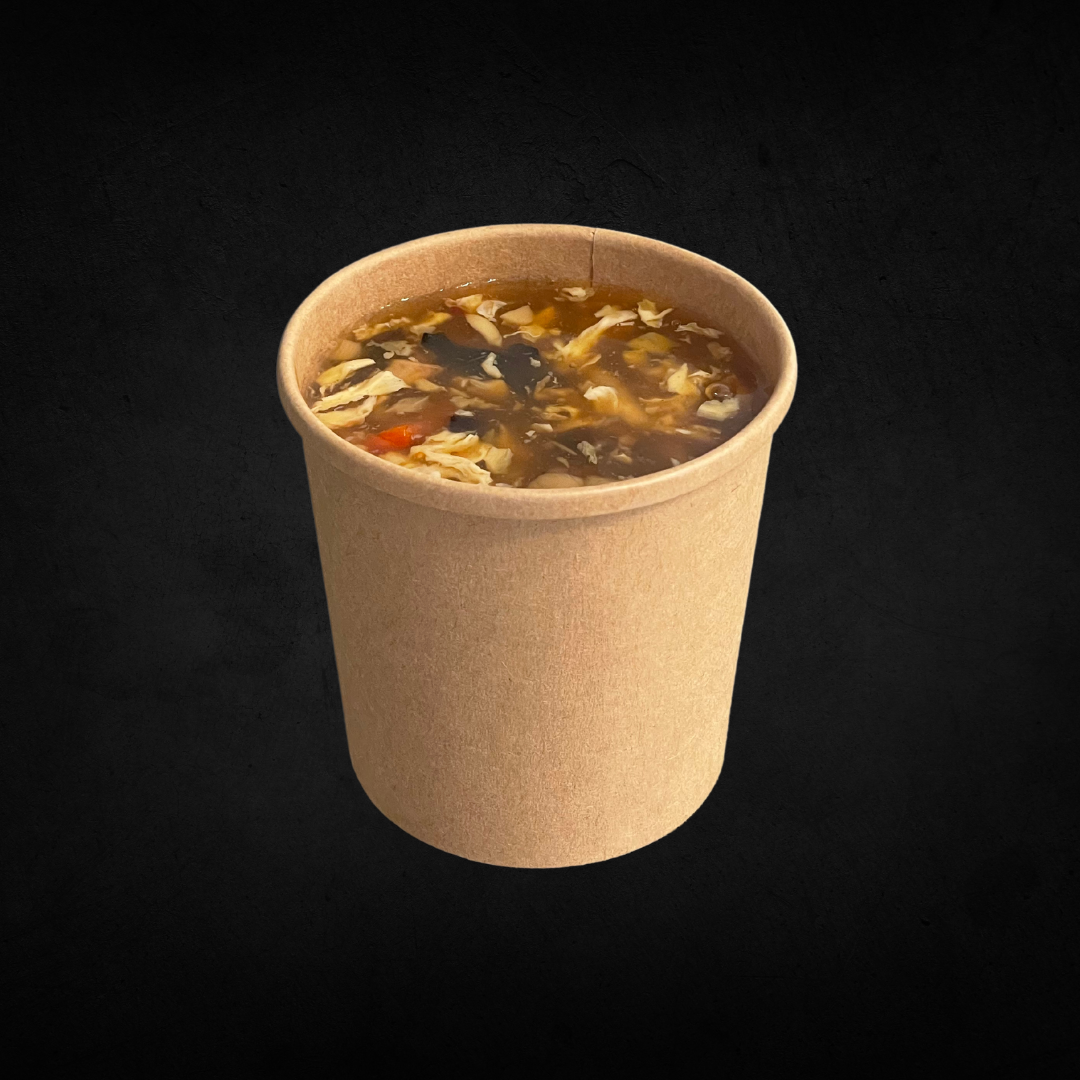 Chinesische Sauer-scharfe Suppe mit Gemüse und Entenfleisch (leicht scharf)