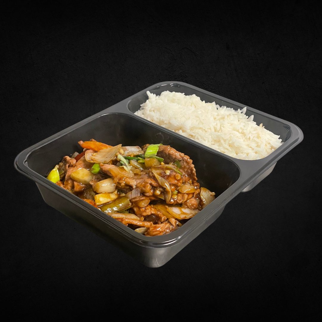 Rindfleisch, gebraten mit Zwiebeln in Austern und Sojasauce nach chinesischer Art